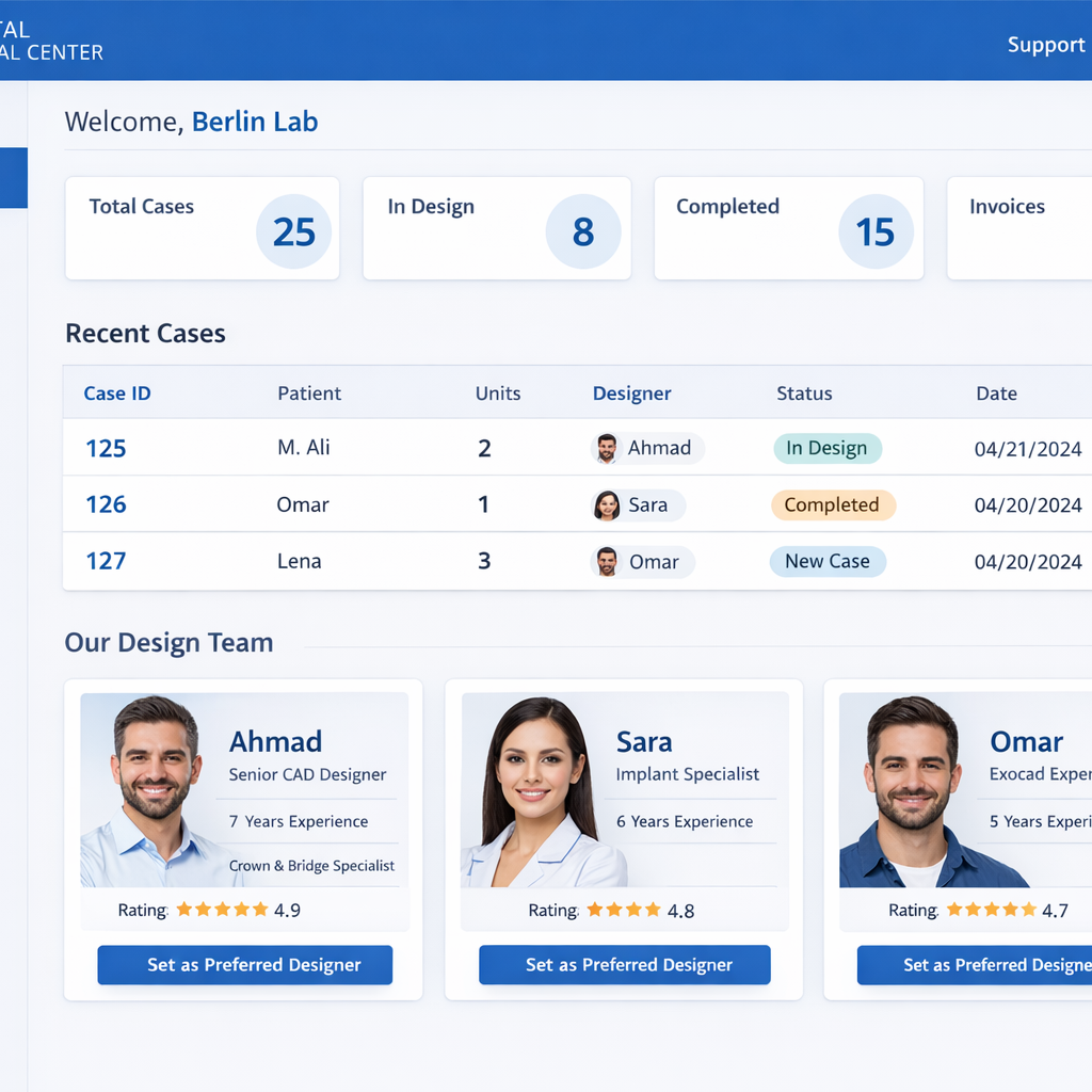 نجمع بين الجودة الألمانية والابتكار الرقمي لنقدم حلولاً دقيقة وفعّالة واقتصادية تلبي متطلبات العمل الحديثة في مخابر الأسنان. نركز على تحسين سير العمل، وزيادة الكفاءة، وضمان أفضل النتائج من الناحية الجمالية والوظيفية.